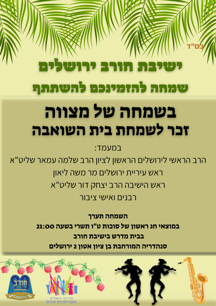 סרטון שלנו! סיור ווירטואלי בישיבה פייסבוק שחרורון ישיבת חורב במספרים 0 ! שנים של וותק חינוכי מההקמה 0 אחוז בכל מחזור מבוגרי השנים האחרונות יצאו לקצונה 0 תלמידים מהכיתות הגבוהות בישיבה לומדים לתואר ראשון באקדמיה 0 אחוז מהבוגרים - ממשיכים בישיבות 0 מהמחנכים, הם בוגרי הישיבה 0 54 אחוז סיימו 5 יח''ל מתמטיקה בתשפ"ג 0 כ35 אחוז לומדים במסלול הכיתה התורנית 0 אחוז מרגישים בבית בישיבה! הכירו את הצוות הרב יצחק דור ראש הישיבה הרב יוסי אליאב סגן ראש הישיבה הרב עופר טויבר ר"מ כיתות יא הרב מנשה רחמים מחנך כיתה ט' הרב צביקה דנטלסקי מנהל החטיבה הרב שמואל גורדון מורה אנגלית הרב ציון אבירם מורה מגמת ארץ הרב אמציה לוי מורה מתמטיקה הרב רוני כהן יועץ ט-יב הרב גואל אהרון מורה מתמטיקה הרב חגי קלמנוביץ מנהל אדמנסרטיבי הרב יהונתן הורביץ מלמד לשון - דף יומי בעין המצלמה ישיבת חורב רח' הרב בן ציון אטון 2 סנהדריה המורחבת, ירושלים ת"ד 45070, מיקוד 9777302 02-5600999 | פקס: 02-5600998 y-info@horev.org.il חזון דבר ראש הישיבה לימודי קודש פרשת שבוע מערכת שעות מגמות תואר ראשון במדעי החיים תואר ראשון במזרחנות סייבר הרשמה טפסים יצירת קשר סרטון שלנו!